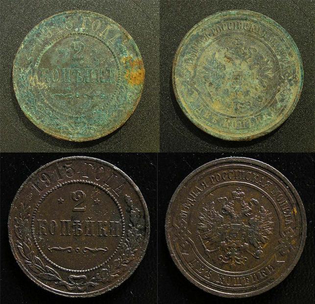 Если у вас в руках впервые оказалась старинная монета, и вы задумываетесь над тем, как ее очистить, то эта статья может вам помочь. Ведь очень часто бывает, что по-неопытности, начинающие коллекционеры, портят монеты, пытаясь очистить их до блеска, тем самым, резко снижая их рыночную стоимость. Главное не переусердствовать! Монета на которой нет грязи и окислов, которые образуются на металле в результате его коррозии, в очистке не нуждается. Если монета была найдена в земле и на ней есть слой грязи или глины, то такую монету, необходимо помыть чуть тёплой водой с мылом, если загрязнения достаточно твердые, можно использовать зубную щетку с мягкой щетиной для очистки. Таким способом удаляют обычные загрязнения с монет из любых сплавов. Если есть окислы, то для дальнейшей правильной очистки нужно постараться определить из какого сплава изготовлена монета. На золотых и серебряных монетах высокой пробы окислы практически не образуются. Такие монеты только промывают вышеуказанным способом, причем стараясь особо ничем не тереть, чтобы не поцарапать. После промывания, монету нужно просушить мягкой салфеткой не оставляющей ворсинок и можно убирать в коллекцию. Монеты из серебра низкой пробы легче всего очистить 9% раствором столового уксуса, или использовать слабый раствор лимонной кислоты. Время, которое потребуется для очистки монеты зависит от ее размеров, и от количества окислов. Обычно, достаточно оставить монету в растворе на 3-5 часов, чтобы она достаточно хорошо очистилась. После обработки кислым раствором монету необходимо промыть проточной водой с мылом, содержащим щелочь, чтобы прекратить воздействие кислоты на металл. Совет. Если вы случайно переусердствовали с очисткой монеты и она приобрела неестественно светлый оттенок. Оставьте монетку на подоконнике, на солнечной стороне. Через неделю на монете образуется красивая равномерная патина, главное не забудьте регулярно ее переворачивать. Медные монеты Чаще всего встречаются и труднее всего подвергаются очистке – медные монеты, особенно если они пролежали в земле несколько лет. Если на монете нет заметных пятен зеленого цвета, то ее просто нужно вымыть и просушить. Естественные окислы темно-коричневого иногда даже почти черного цвета, называются патиной – удалять их нельзя. Они представляют собой естественную защиту монеты. Чем ровнее цвет патины, тем монета красивее. Если на монете есть темно-зеленые пятна, то монету нужно почистить 9% раствором столового уксуса или лимонной кислоты. Время очистки так же зависит от степени поражения монеты окислами. После очистки необходимо промыть и просушить монету. Иногда встречаются монеты, пораженные «бронзовой болезнью». Их в домашних условиях, без специальных химических реактивов очистить не удается. Определить эту болезнь у монеты достаточно просто. Окислы представляют собой светло-зеленые крупинки, монета сильно разрушена, буквально крошится в руках. Если вам попалась такая монета, не пытайтесь очистить ее самостоятельно. Если монета очень редкая - необходимо обратиться к профессиональному реставратору.